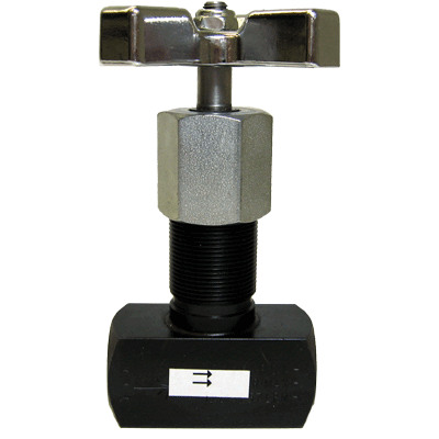 Needle valve 1/2in, rated 250psi steam, color coded shaft, numbered handle |